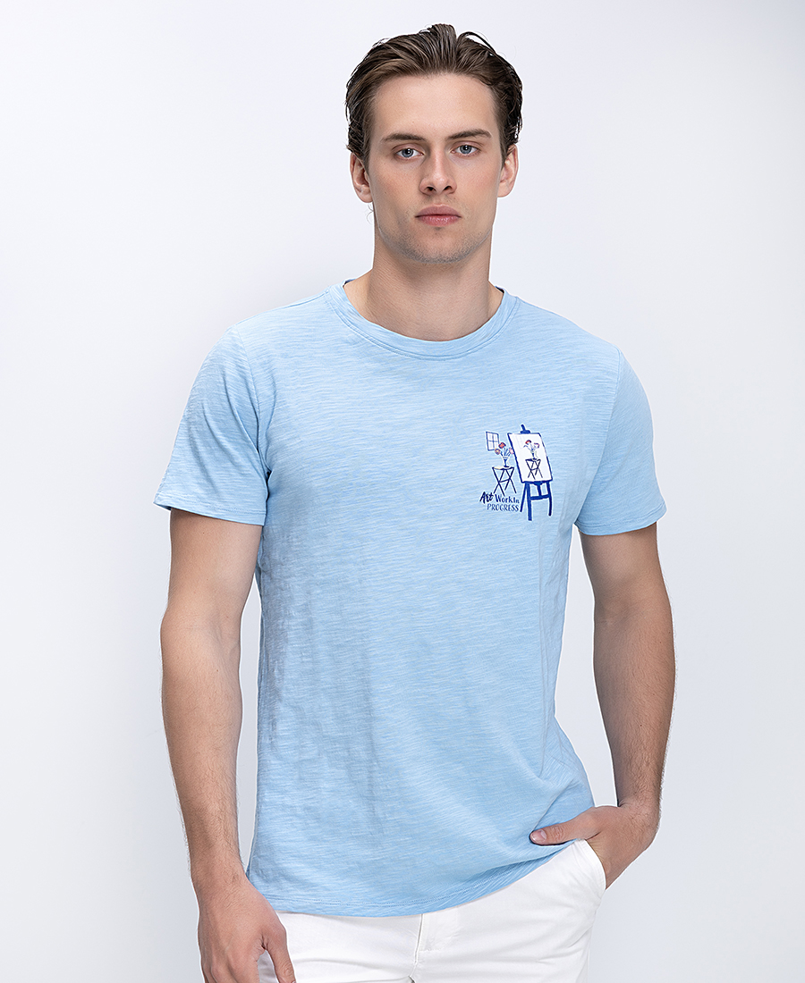TRUSSARDI REGULAR FIT CHROMED GREYHOUND T-SHIRT MTS14J02-024 SkyBlue
