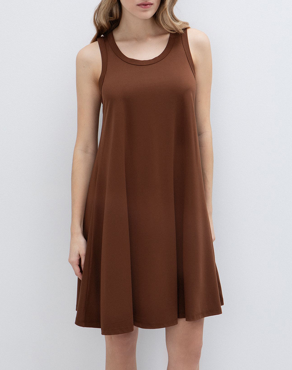 Γυναικείο μίνι φόρεμα, με στρογγυλή λαιμόκοψη και φαρδιές τιράντες. (Σύνθεση: 60% Βισκόζη, 31% Πολυαμίδιο, 9% Ελαστάνη)