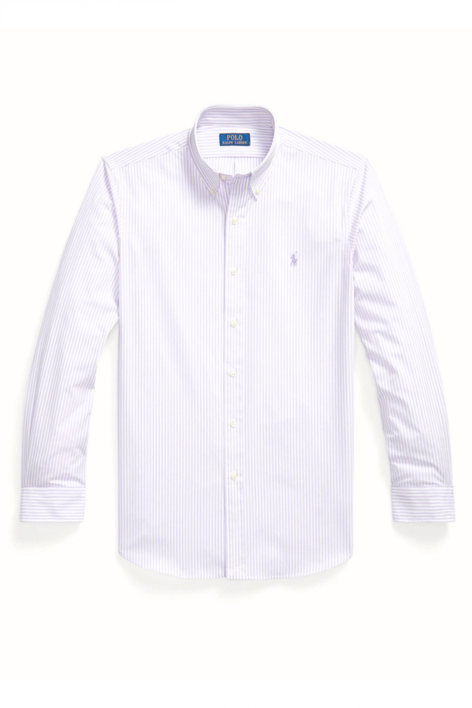 RALPH LAUREN ΠΟΥΚΑΜΙΣΟ ΡΙΓΕ CUSTOM FIT STRETCH ΓΑΛΑΖΙΟ-ΛΕΥΚΟ