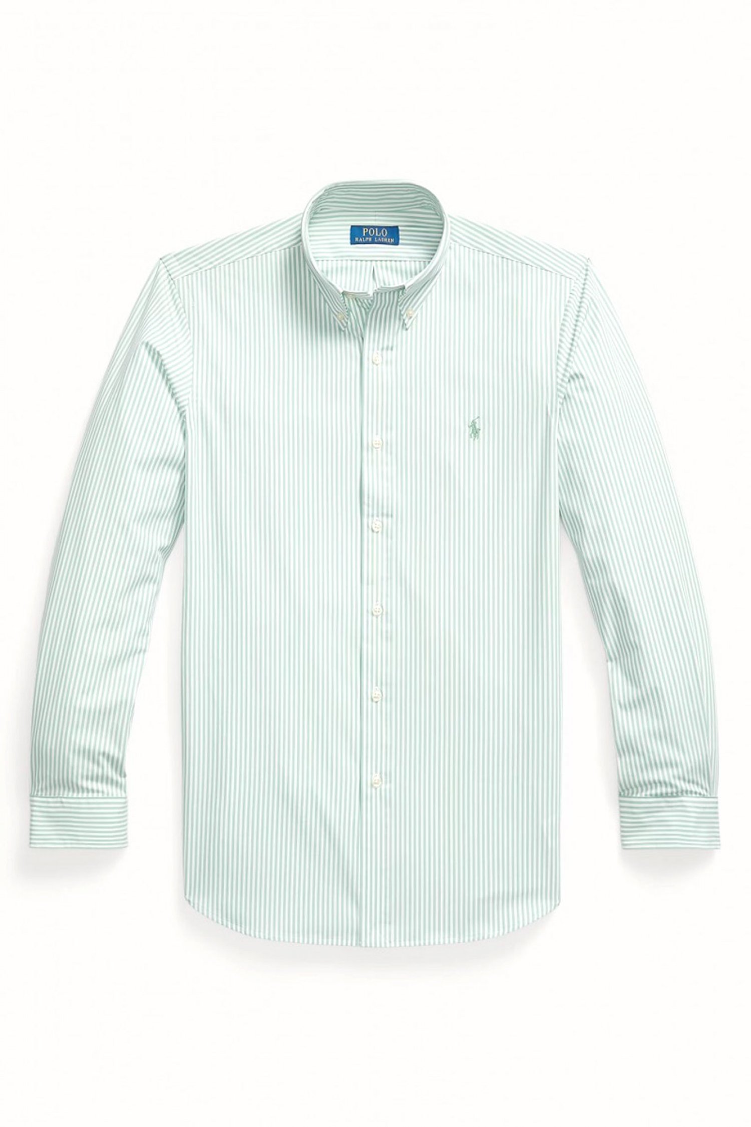 RALPH LAUREN ΠΟΥΚΑΜΙΣΟ ΡΙΓΕ CUSTOM FIT STRETCH ΓΑΛΑΖΙΟ-ΛΕΥΚΟ