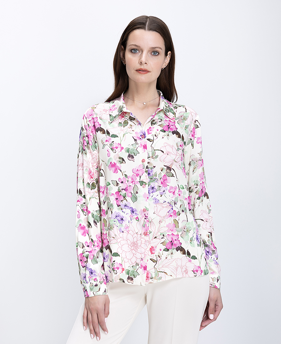 Εμπριμέ πουκάμισο με floral σχέδιο και contrast λεπτομέρειες