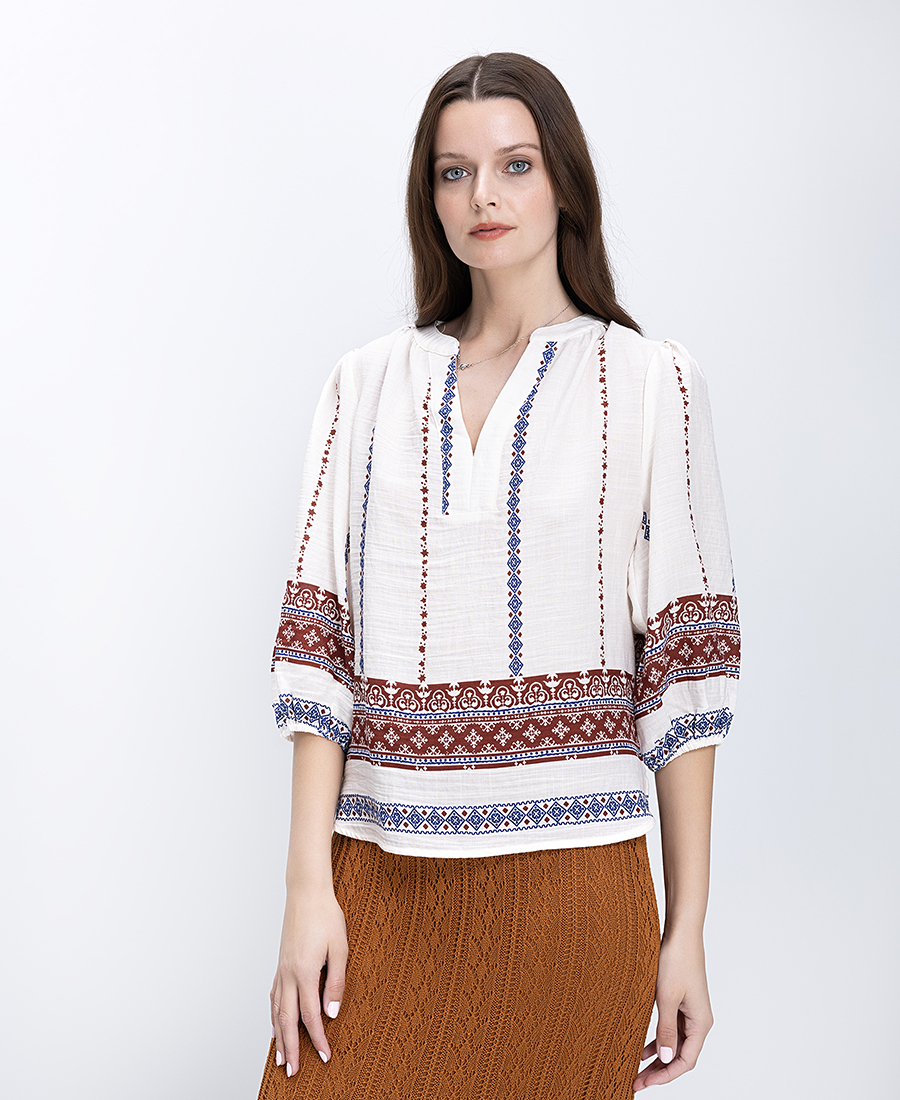 Μπλούζα μουσελίνα με στρογγυλή λαιμόκοψη