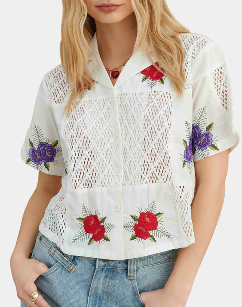 Εμπριμέ πουκάμισο με floral σχέδιο και contrast λεπτομέρειες