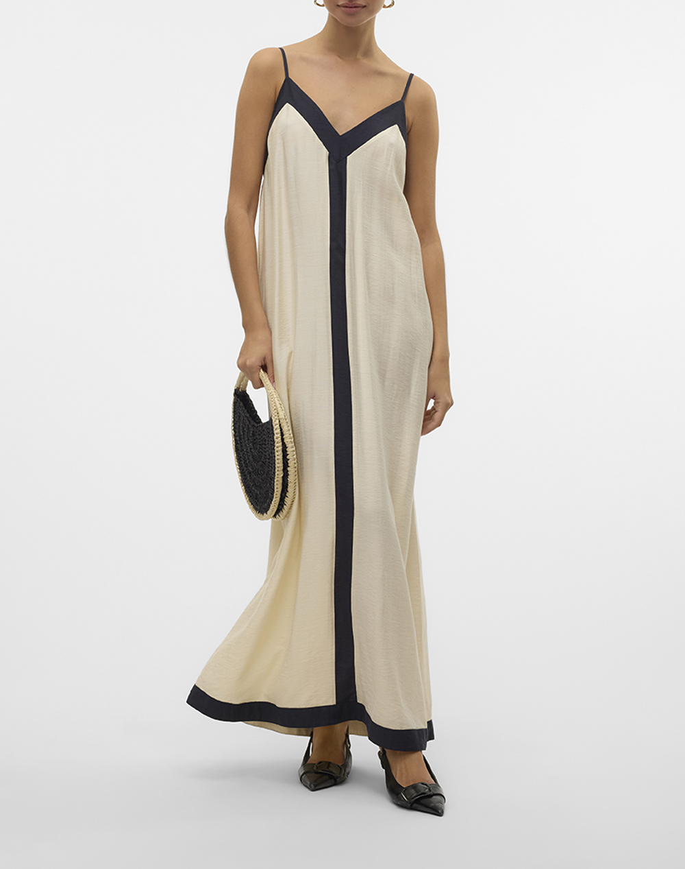 Maxi φόρεμα βισκόζη με v λαιμόκοψη και τιράντες