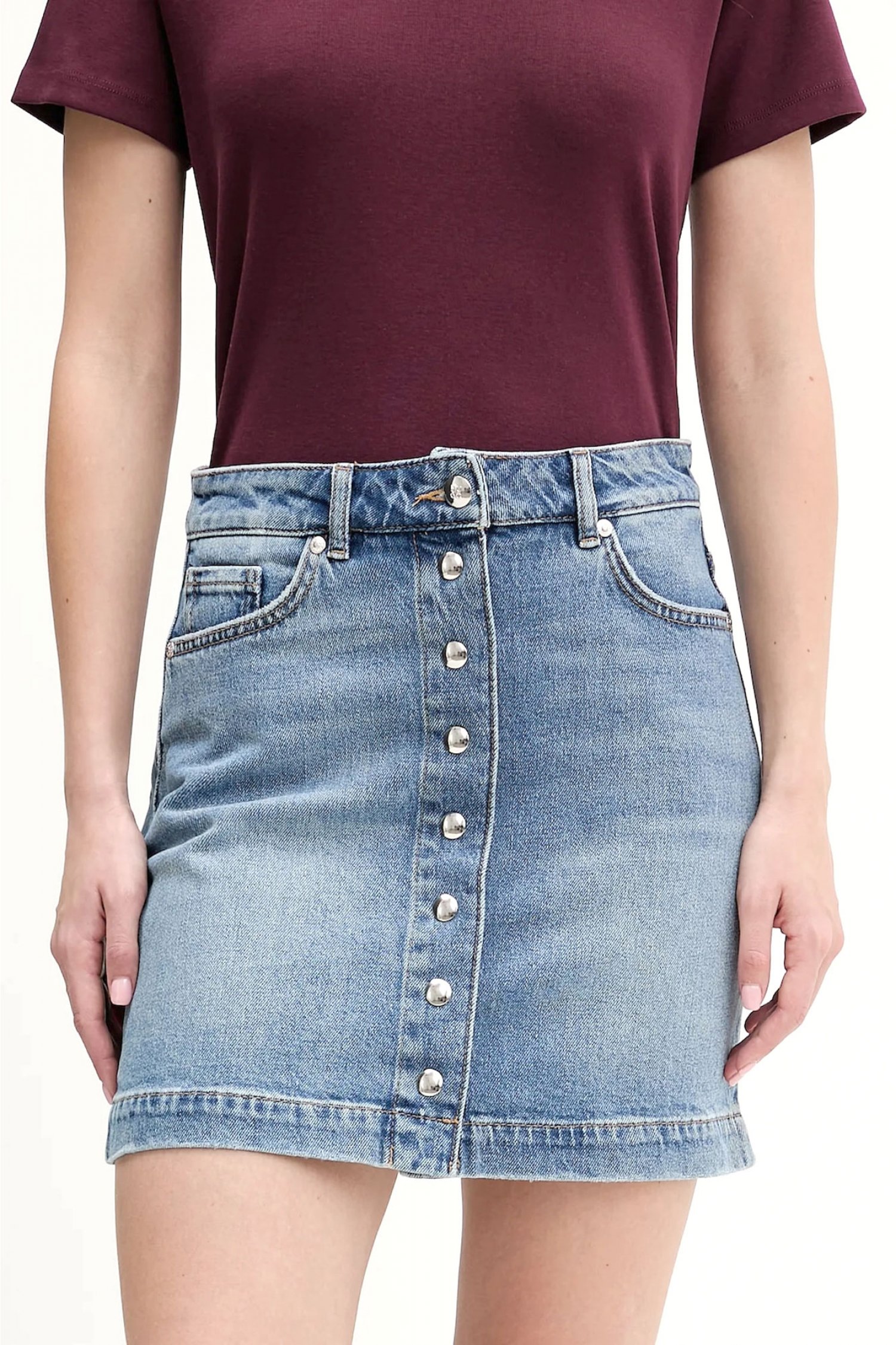 Ψηλόμεση μίντι φούστα με ελαστική μέση και εβαζέ στο τελείωμα