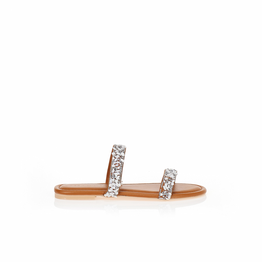 Σανδάλια TSOUKALAS λευκά με αγκράφα και στρας