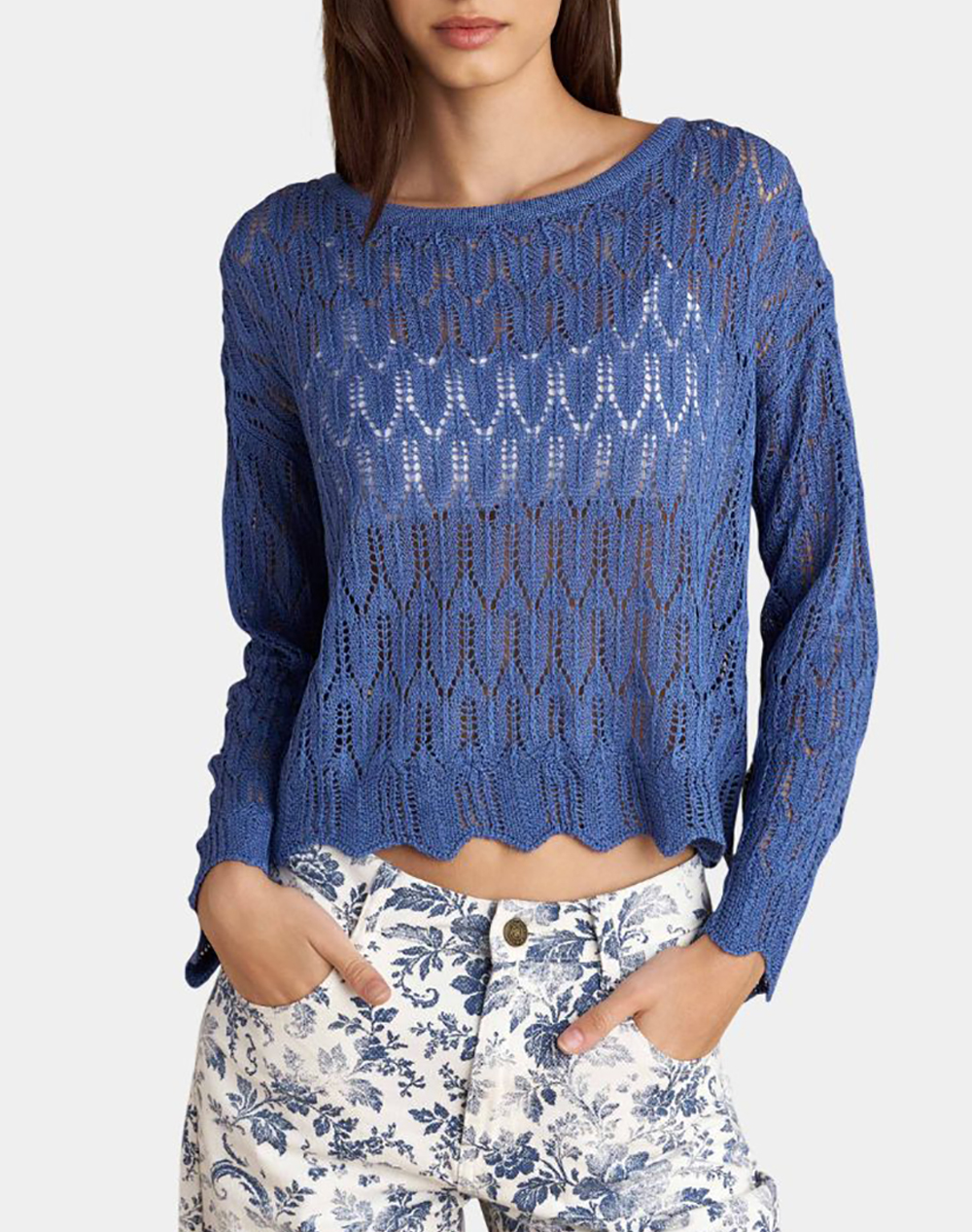 PARABITA Πλεκτή μπλούζα με συνδυασμό πλέξης 012610106337-003 NavyBlue
