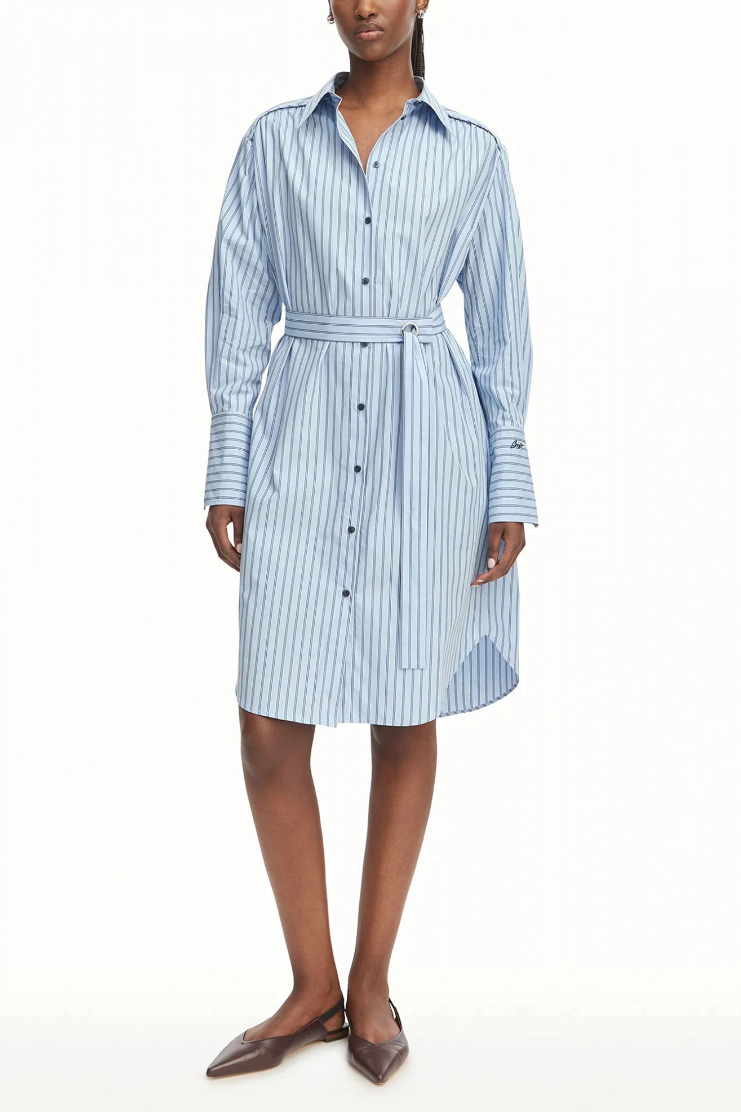 -15%RALPH LAUREN ΦΟΡΕΜΑ MIDI ΡΙΓΕ W POLO BSR ΚΟΥΜΠΙΑ ΑΠΟΣΠΩΜΕΝΗ ΖΩΝΗ ΜΠΛΕ-ΛΕΥΚΟ