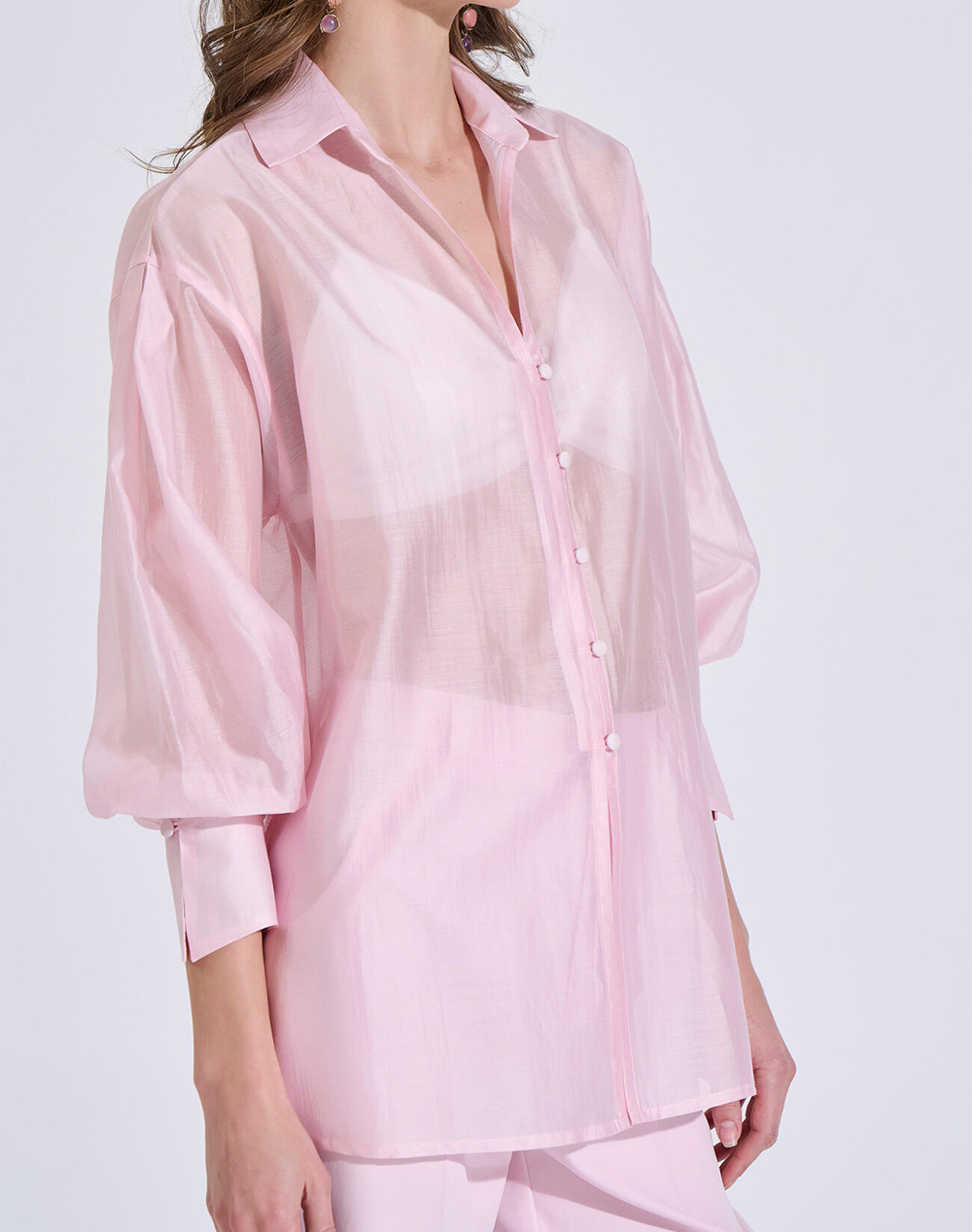 Γυναικείο πουκάμισο, μακρυμάνικο, με ημιδιαφανές ύφασμα, ανοίγματα στο πλάι και κλείσιμο κατά μήκος με κουμπιά. (Σύνθεση: 85% Lyocell ,15% Πολυεστέρας)