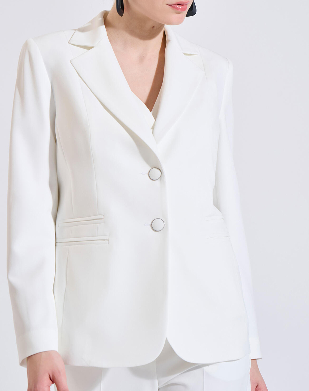 Γυναικείο σακάκι, σε κανονική γραμμή, με γιακά πέτο, πλαϊνές τσέπες και κλείσιμο μπροστά με κουμπιά. (Σύνθεση: 88% Ανακυκλωμένος πολυεστέρας, 12% Ελαστάνη)