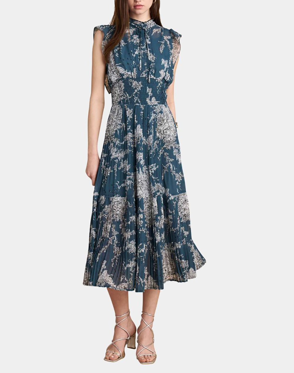 Γυναικείο midi φόρεμα, αμάνικο, πλισέ κάτω μέρος, με σφηκοφωλιά στη μέση και εμπριμέ μοτίβο. (Σύνθεση: 100% Πολυεστέρας)