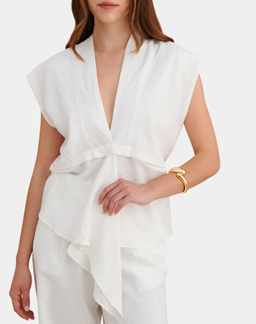 Γυναικείο ασύμμετρο τοπ, σε χαλαρή γραμμή, με V λαιμόκοψη και ιδιαίτερο σχεδιασμό. (Σύνθεση: 81% Βισκόζη, 15% Πολυεστέρας, 4% Πολυαμίδιο)