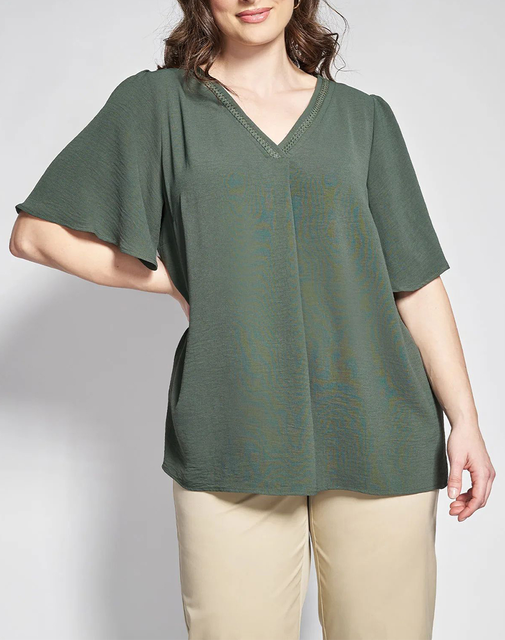 PARABITA Mπλούζα ζέρσευ με άνοιγμα keyhole 012610100225-023 Khaki