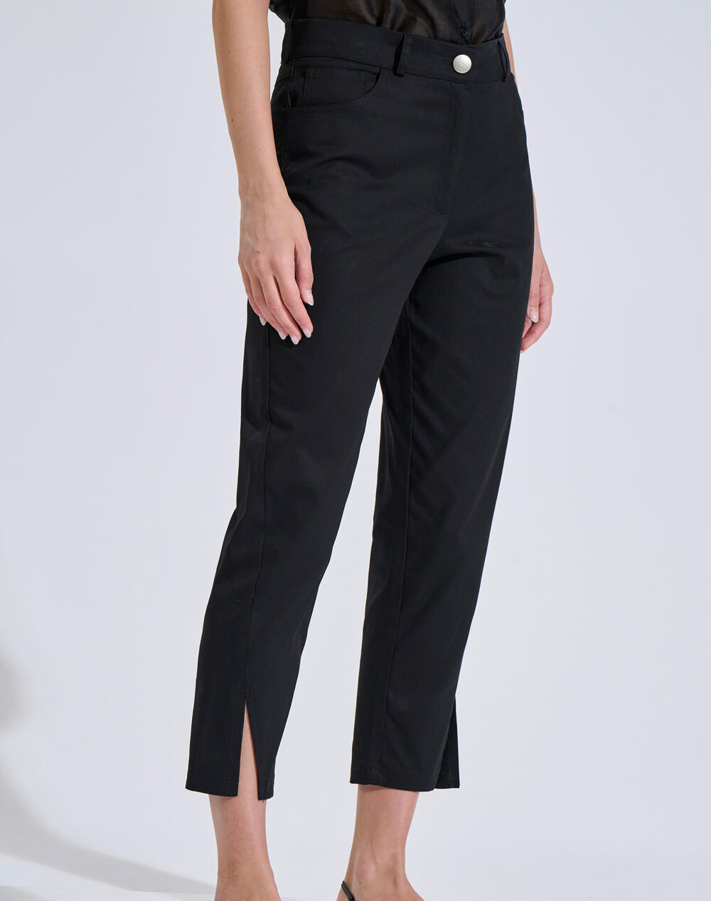 Γυναικείο crop παντελόνι, σε ίσια γραμμή, με πλαϊνές και πίσω τσέπες, ανοίγματα στο τελείωμα και κλείσιμο με φερμουάρ και κουμπί. (Σύνθεση: 97% Βαμβάκι,3% Spandex)