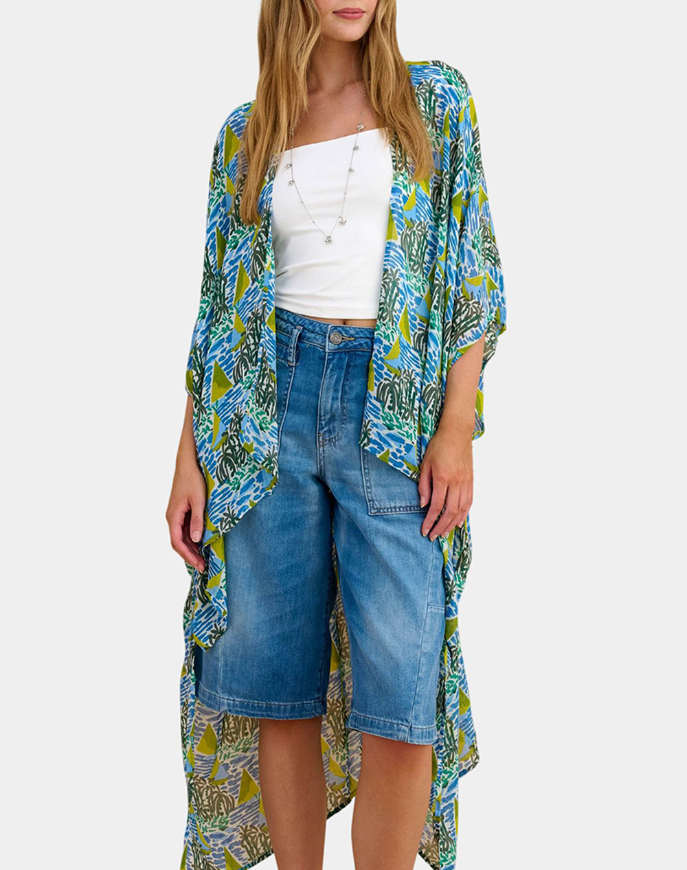 Γυναικείο κιμονό, σε φαρδιά γραμμή, με μανίκια 3/4 και εμπριμέ μοτιβο.(Σύνθεση: 100% Βισκόζη)