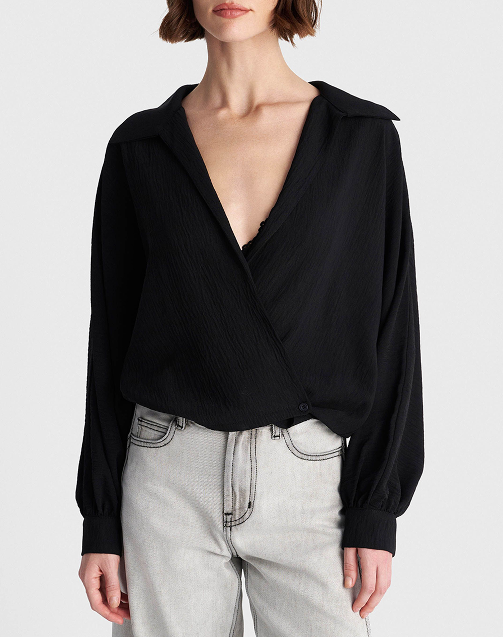 Γυναικείο μπολερό τύπο κρουαζέ, μακρυμάνικο, με γιακά, φαρδιά μανίκια και ανάγλυφη υφή. (Σύνθεση: 100% Πολυεστέρας)