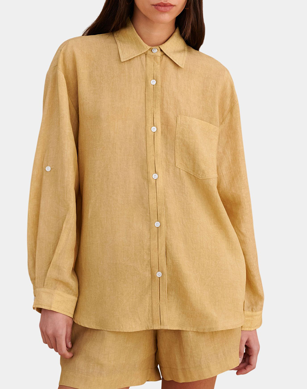ONLY ONLITA S/S LINEN LOOK SHIRT TLR 15371917-Sunlight Gold