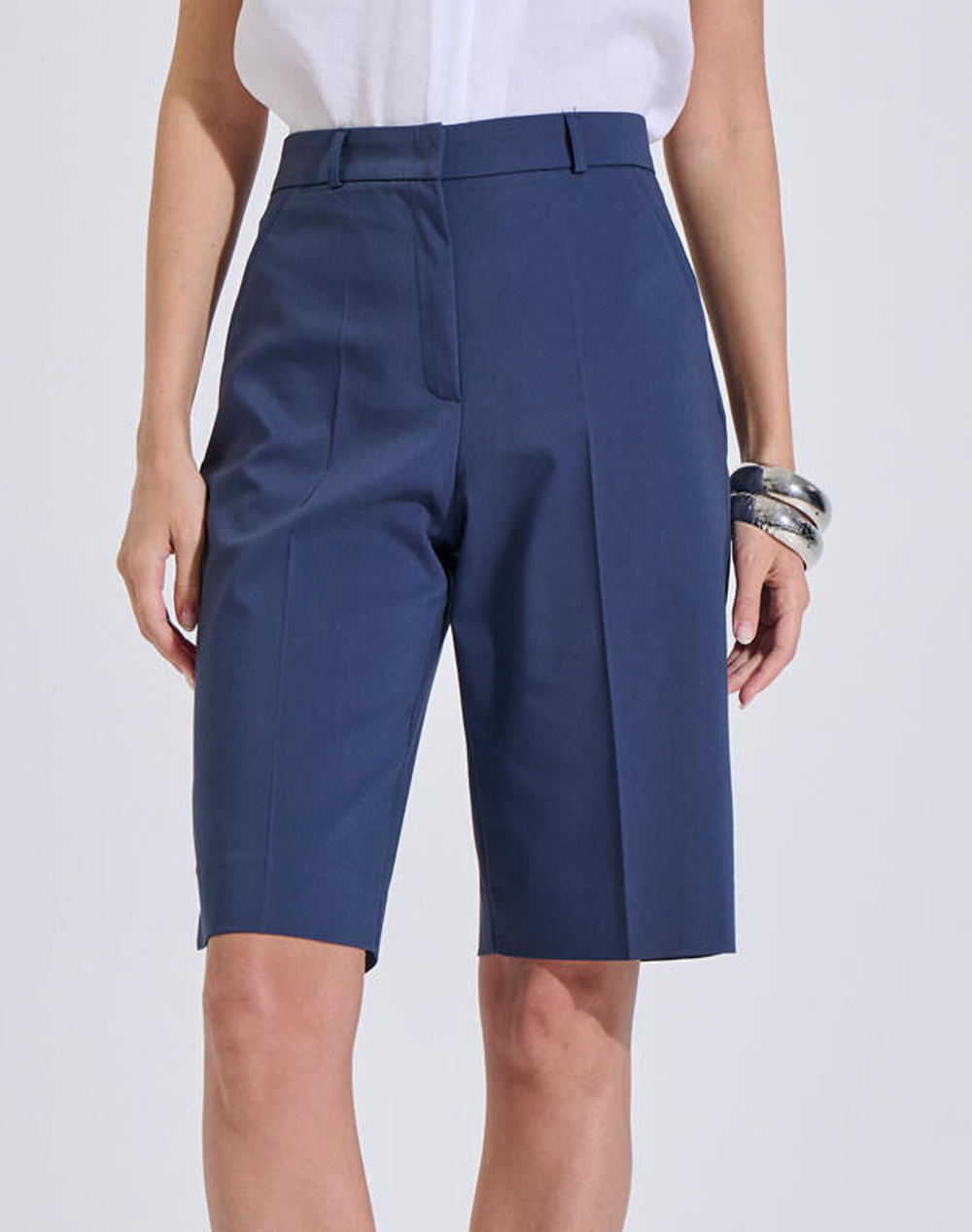 Γυναικεία βερμούδα, σε κανονική γραμμή, ψηλόμεση, με διακοσμητικές τσέπες και κλείσιμο με φερμουάρ. (Σύνθεση: 64% Βαμβάκι, 38% Πολυεστέρας, 2% Spandex)