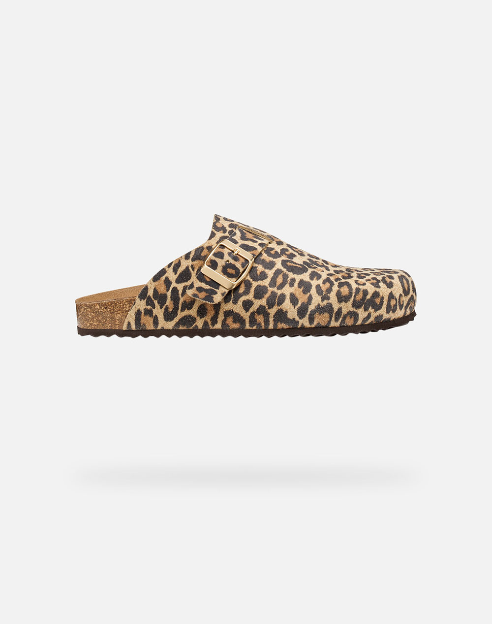 Γυναικεία σανδάλια, με κλειστή στρογγυλή μύτη, animal print μοτίβο, ανατομική εξωτερική σόλα και slip on εφαρμογή. (Σύνθεση: 100% Δέρμα σουέτ)