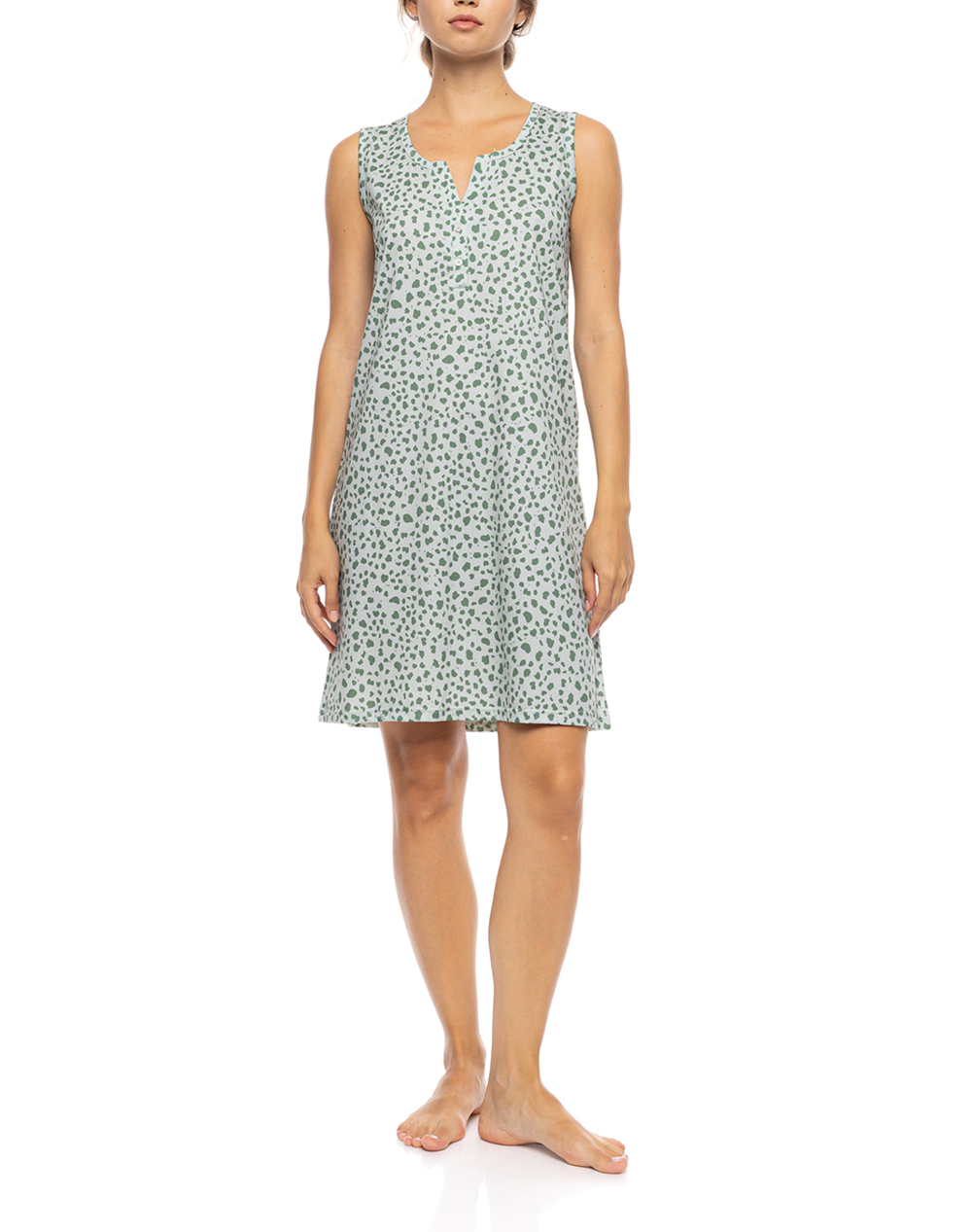 Γυναικείο νυχτικό, σε κανονική γραμμή, με εμπριμέ μοτίβο, αμάνικο, με πατιλέτα με κουμπιά. (Σύνθεση: 100% Βαμβάκι)
