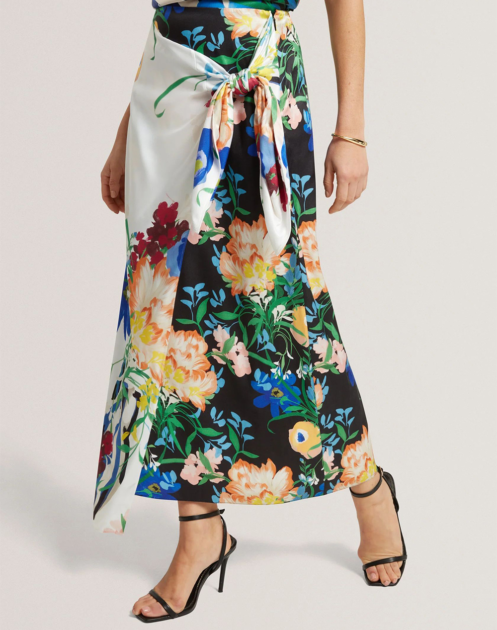 Loose fit μάξι εμπριμέ φούστα με σκίσιμο στο πλάι