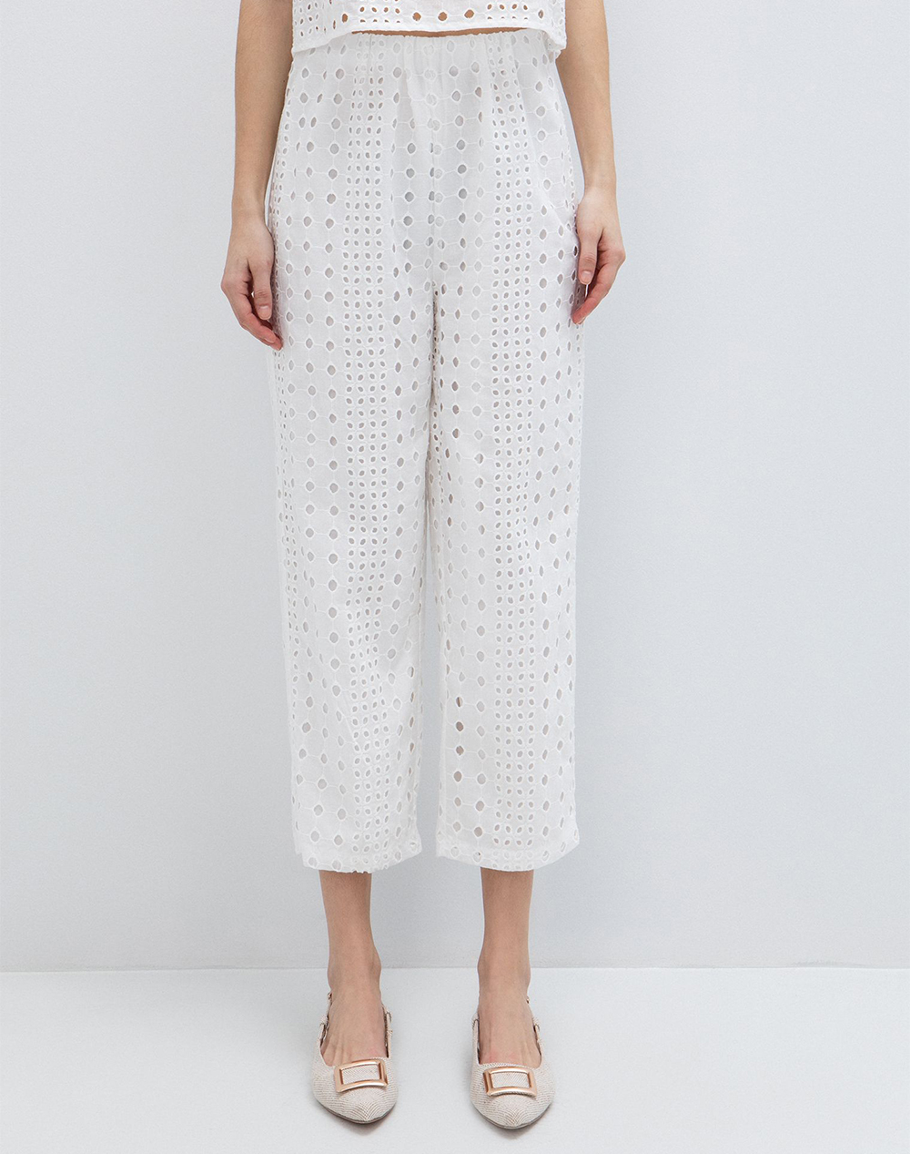 -57%Παντελόνα σατινέ με γεωμετρικό εμπριμέ και μπορντούρα