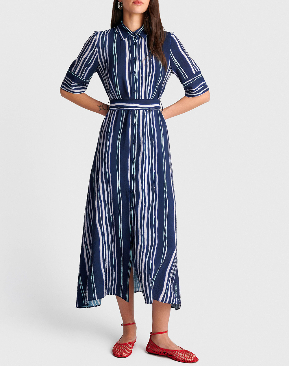 -15%RALPH LAUREN ΦΟΡΕΜΑ MIDI ΡΙΓΕ W POLO BSR ΚΟΥΜΠΙΑ ΑΠΟΣΠΩΜΕΝΗ ΖΩΝΗ ΜΠΛΕ-ΛΕΥΚΟ