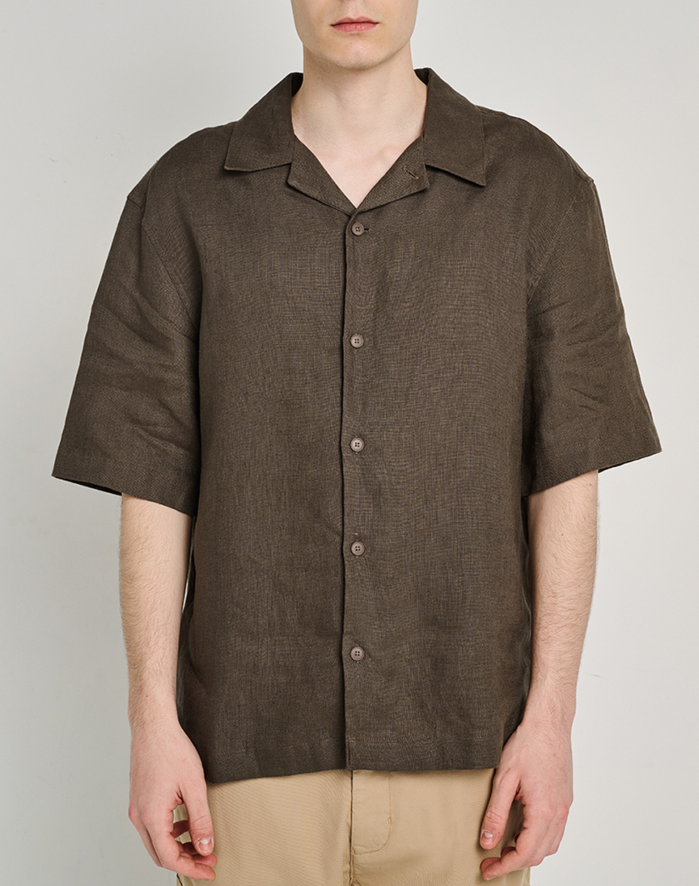 STAFF Ron Man Shirt Linen Short Sleeve 30%Linen 70%Co 61-202.055-Ν0090 Black