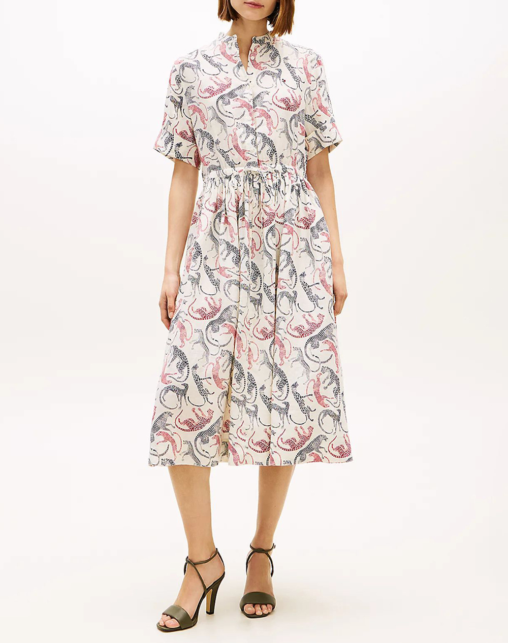 TOMMY HILFIGER VIS/LINEN BELTED KNEE SS DRESS WW0WW49659-MS3 Green