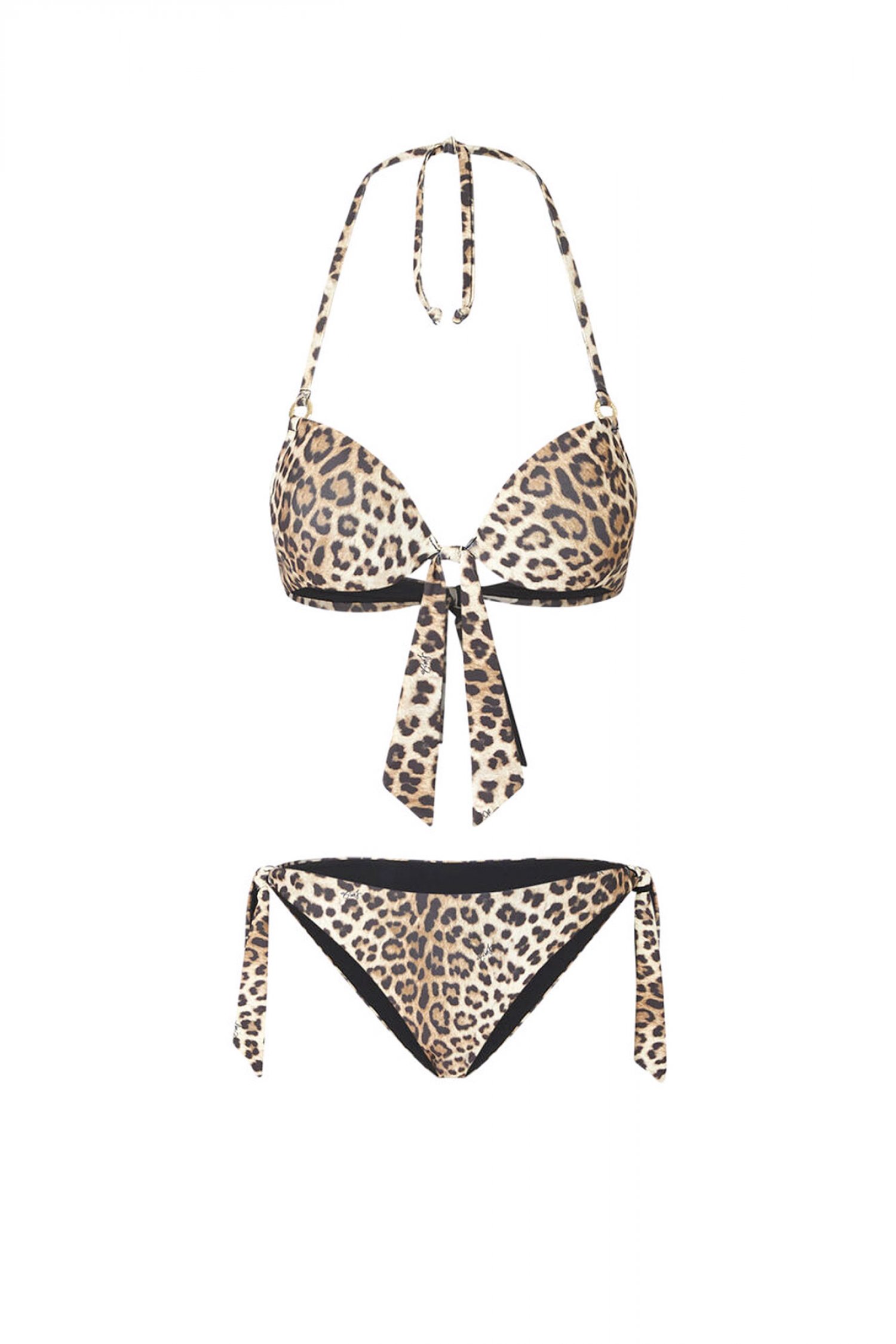 LIU-JO ΜΑΓΙΩ ΟΛΟΣΩΜΟ LEOPARD PRINT LOGO ΜΕΤΑΛΛΙΚΟ ΜΠΕΖ-ΚΑΦΕ