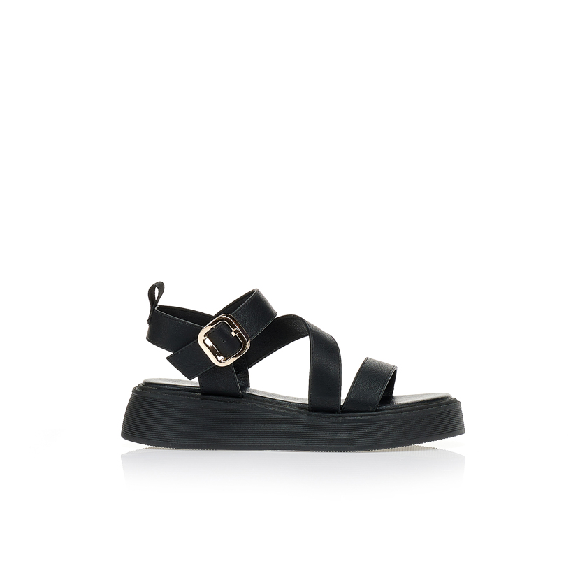 Πλατφόρμες TSOUKALAS μαύρες με πολλαπλά λουράκια