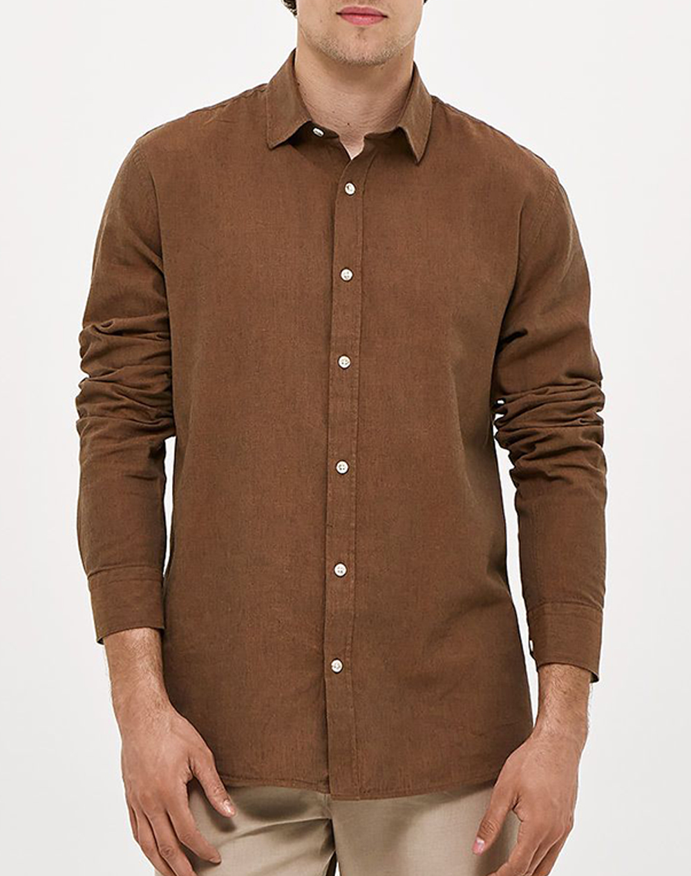 SELECTED SLMREGCLAUS CLAY LINENBLEND LS SHT NOOS 16100084-Pure Cashmere Biege