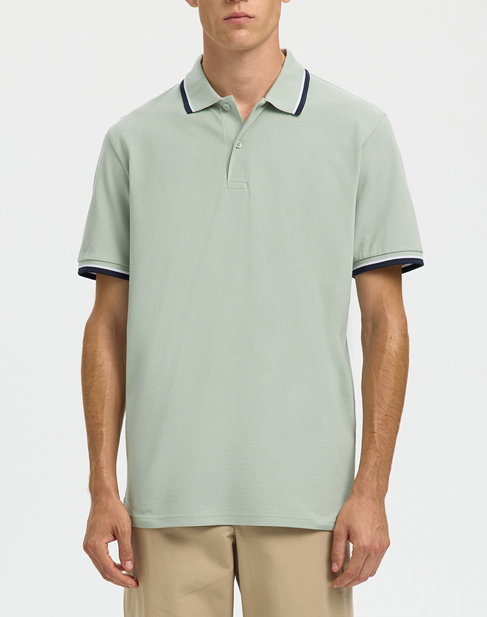 SELECTED SLMFAVE BUTTON SS POLO NOOS 16099994-Aqua Gray MintGreen