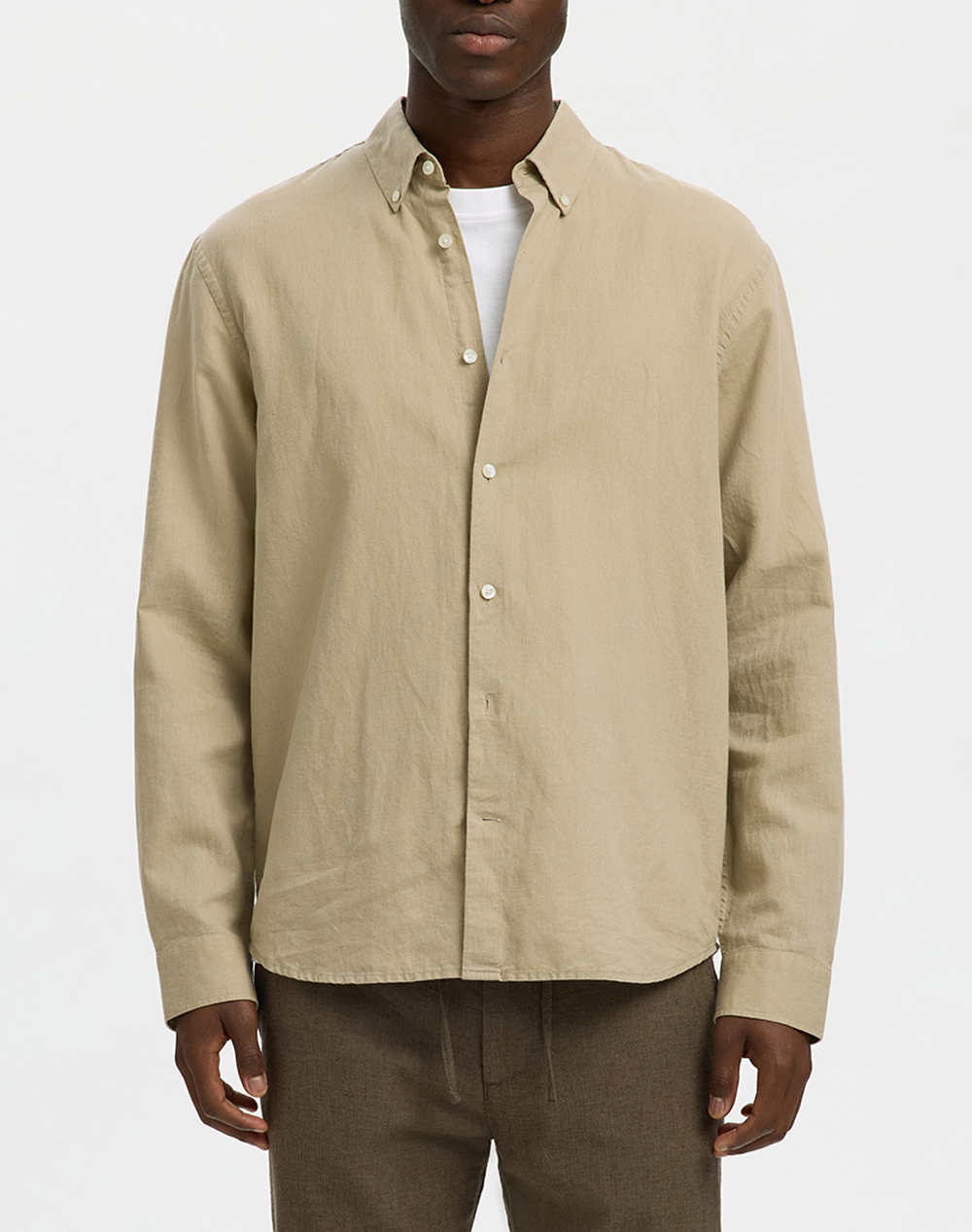 SELECTED SLMREGCLAUS CLAY LINENBLEND LS SHT NOOS 16100084-Vetiver Olive