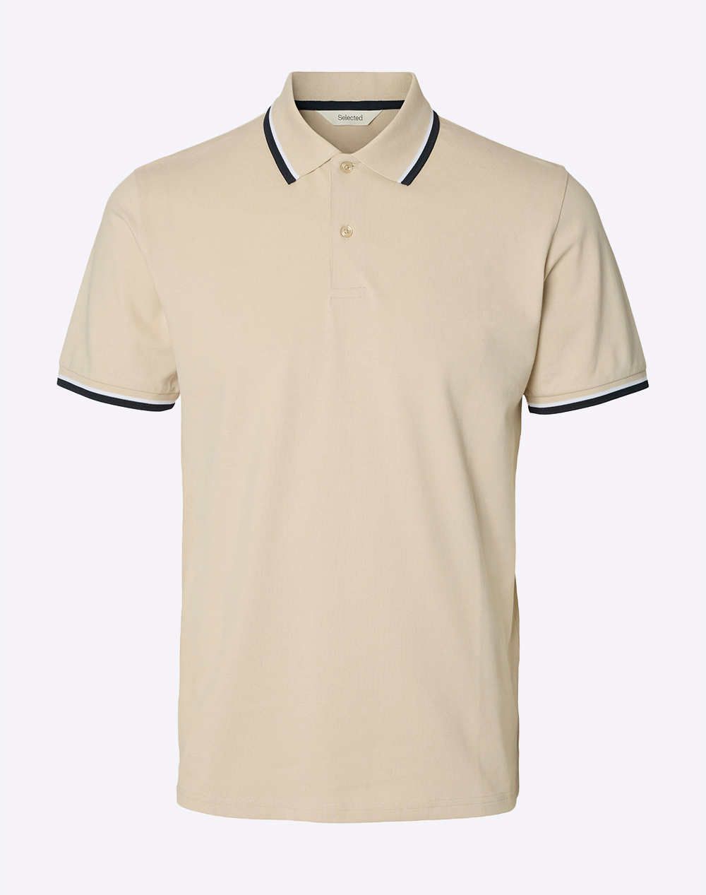 SELECTED SLMFAVE BUTTON SS POLO NOOS 16099994-Cloud Dancer OffWhite