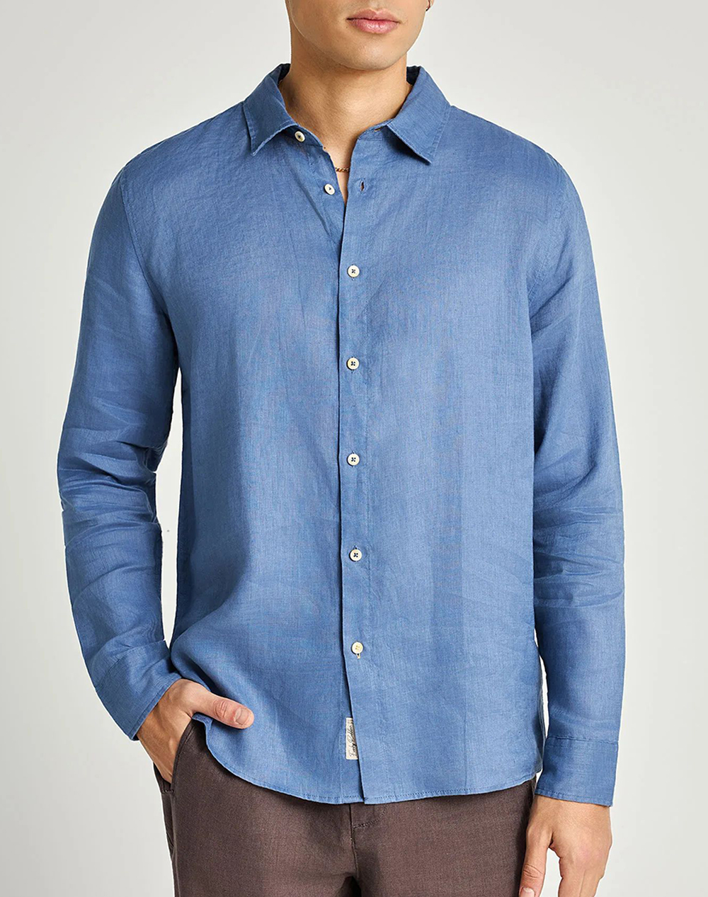 DIRTY LAUNDRY Classic Linen Shirt DLMS000134-VINTAGE GREIGE Gray